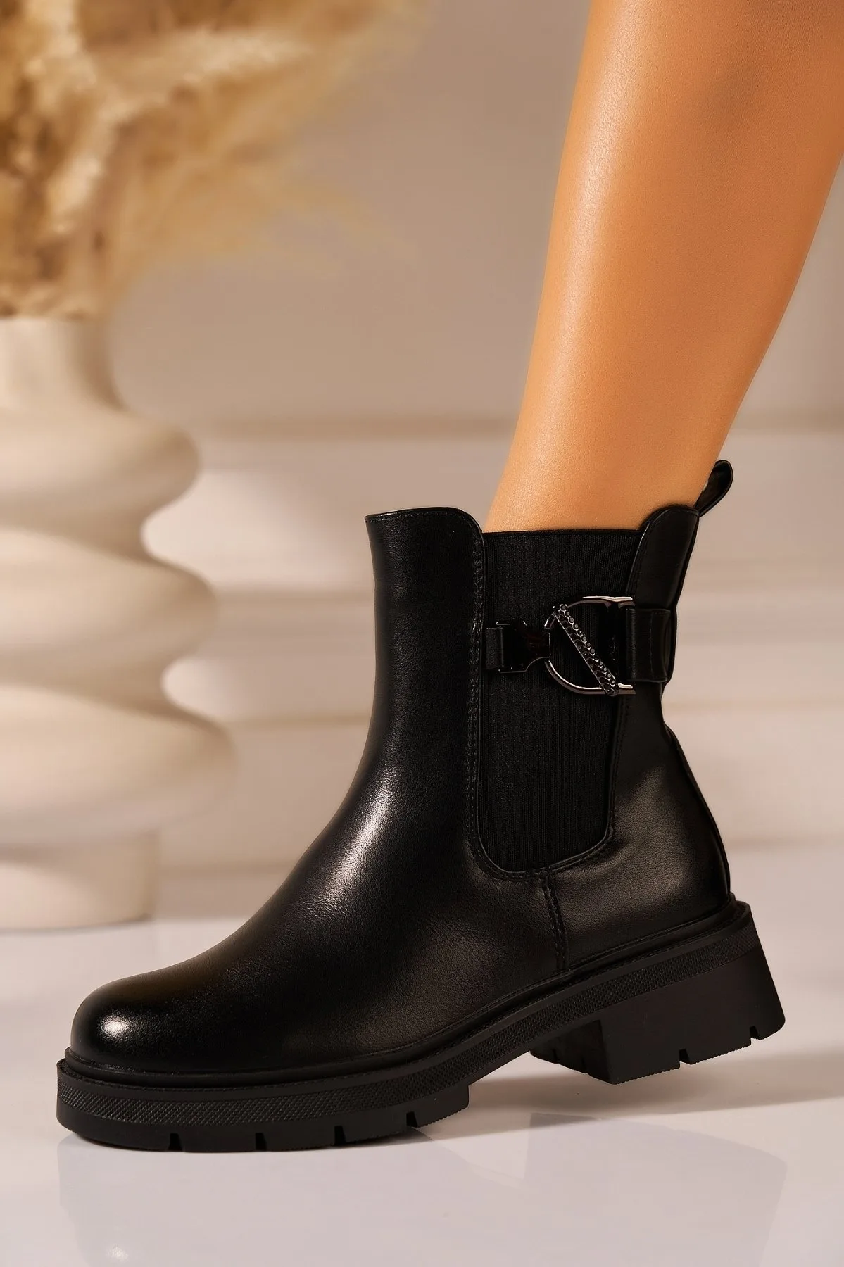 Specification: Ghete Dama Imblanite Negre din Piele Ecologica Taizlyn
